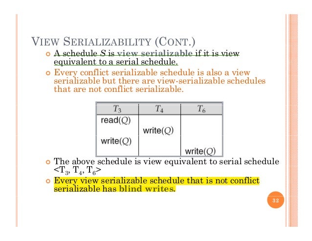 A blind write is a write operation eg. Now To check whether S is view serializable or not let us use another method. This is a case of Outdated or Obsolete Writes.